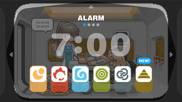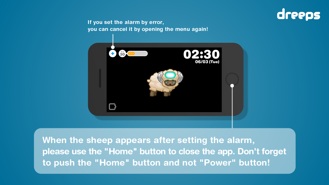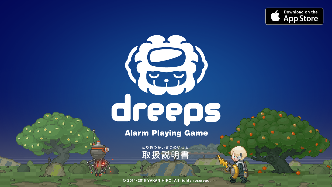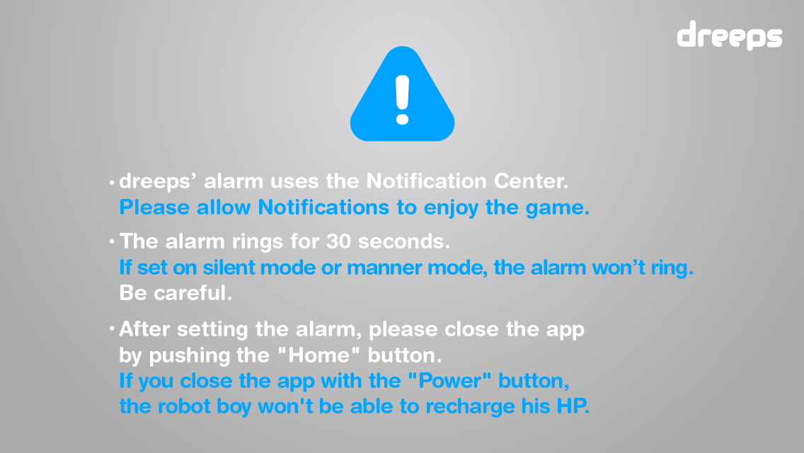 "Alarm Playing Game" is a new type of game where you just have to set an alarm to enjoy an RPG adventure. Before going to bed just set the alarm in dreeps, and the robot boy will sleep like you.