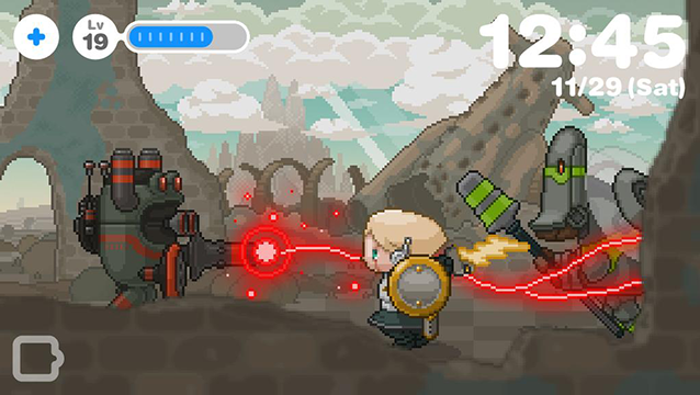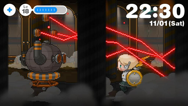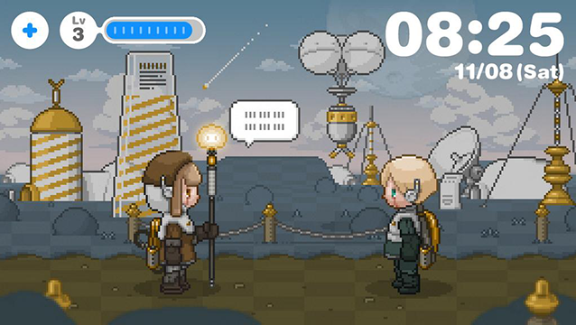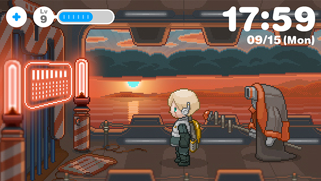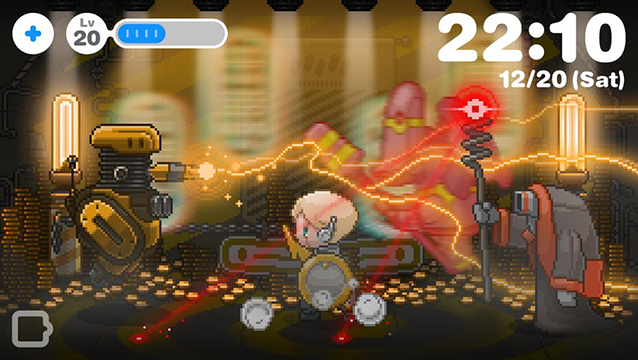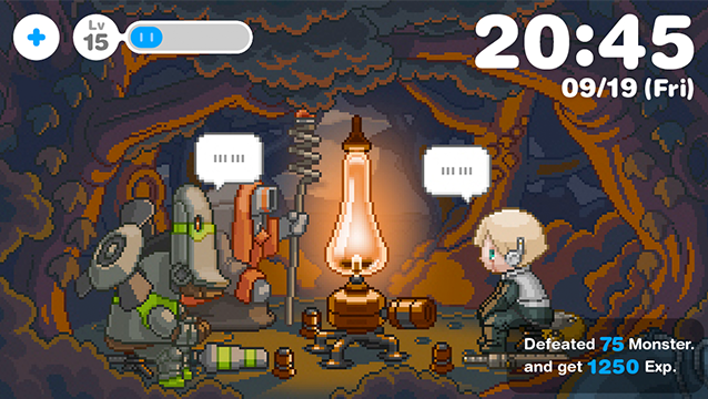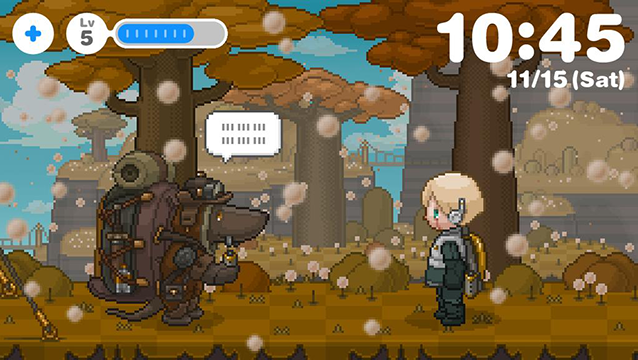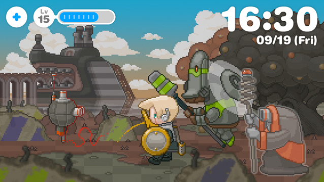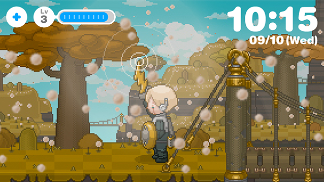 朝、アラームで目覚め、あなたは仕事や学校へ、少年ロボットは草原や渓谷やボスの待つ孤島のダンジョンへと冒険に。あなたと少年ロボットの1日が始まります!